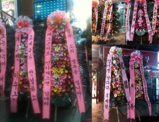 당시 신동엽은 “막창 중독자”, 이효리는 “내 이름은 이효리 거꾸로 해도 이효리”라는 글이 쓰인 화환을 보내 화제가 됐었다. 특히 방송인 김제동은 “서래마을 채식 꼬마요정이 돼지들이 명복을 빕니다”라는 메시지로 보는 이들을 폭소케 했다.