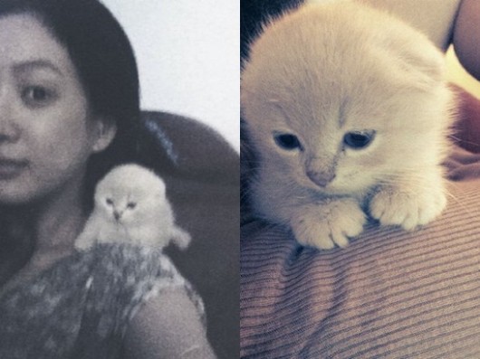 공개한 사진속 정려원은 자신의 어깨에 작은 고양이를 올려놓고 있는 모습이다. 정려원의 어깨에 올라와 있는 작은 고양이는 깜찍함을 자아내고 있다.