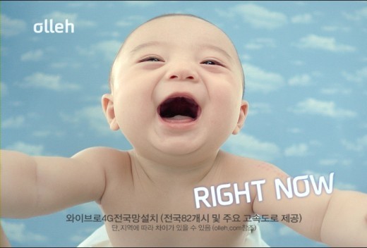 "엄마와 함께 4G로 가볼까? 서울~ 대전~ 대구~ 부산~ 광주~ 제주~ 올레와 함께라면 전국 모든 시에서 4G를 누릴 수 있다! 언제? Right Now(지금 당장)!"