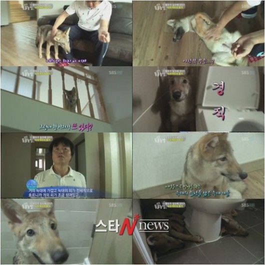 가정집 안에 사는 늑대개 담이와 홍이의 모습이 공개됐다.