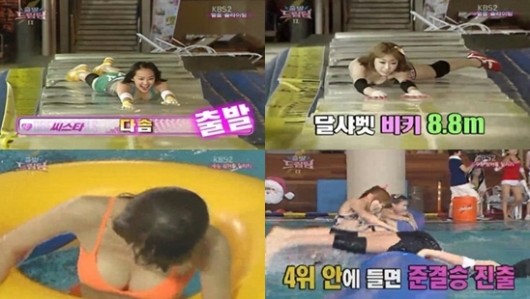 특히 얼음 위를 슬라이딩해 멀리까지 가는 게임을 벌이던 중 여자 연예인들의 가슴골이 그대로 전파를 타며 수위 높은 노출 장면을 연출됐으며 수중 레슬링 경기에서도 카메라 각도가 보기 민망할 정도로 가슴이 노출돼 아침시간대에 성인방송이냐는 항의 글이 빗발친 것.