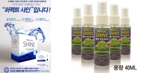 | 여름철에 아이웨어를 간단히 세척 및 관리를 할 수 있는 제품들이 국내에 소개되어 호응을 얻고 있다. 왼쪽부터 다림광학 ‘퍼팩트 샤인’, 디아이콘 ‘매직샤이니’. |