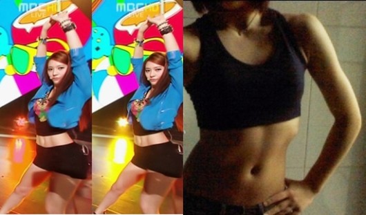 투애니원 공민지의 복근이 화제가 된 가운데 에프엑스 크리스탈의 복근이 다시 화제가 되고 있다.