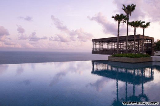 절벽 꼭대기에서 무한대로 뻗어있는 이 수영장은 공간에 떠있는 것처럼 보인다. 수영장 끝에는 수평선을 감상할 수 있도록 마련된 카바나가 설치돼있다. ( www.alilahotels.com/uluwatu)