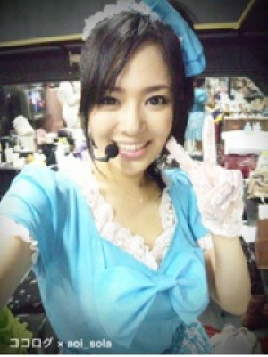 공개된 사진 속 아오이 소라는 깜찍한 만화 속 주인공을 연상케 하는 레이스가 달린 블루계열의 치마를 입고 흰 장갑을 낀 채 브이포즈를 한 모습이다.