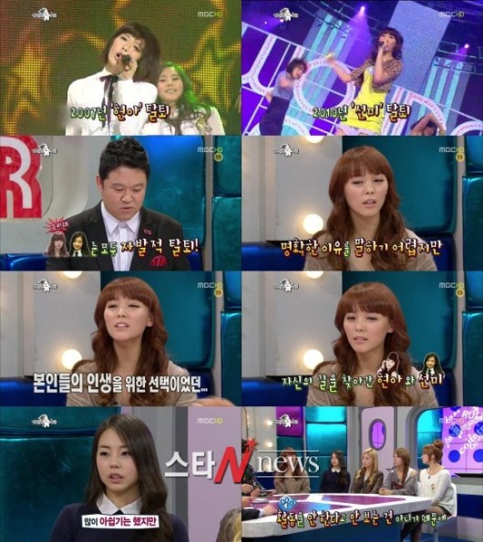 김구라는 이어 “왜 이렇게 멤버들이 자주 바뀌는 것 같냐? 현아와 선미는 모두 자발적으로 탈퇴를 했다”고 말했다.