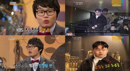 지난 22일 오후 방송된 KBS 2TV '승승장구'에는 최근 ‘개그콘서트-애매한것을 정해주는 남자(이하 애정남)’으로 인기가도를 달리고 있는 최효종이 출연해 과거 개그맨 지망생 시절 ‘인간극장’에 출연했던 모습이 공개돼 눈길을 끌었다.