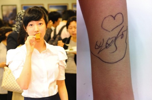 사진 속에는 사유리의 것으로 보이는 팔과 그 팔에 ‘뽀빠이’라는 사인과 하트가 눈길을 끈다.