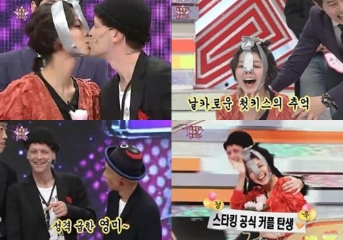 이날 방송에서 안영미는 퍼포먼스 도중 영국인 멤버 크리스에게 살짝 볼키스를 하려고 시도 했다. 하지만 크리스가 갑자기 안영미 쪽으로 고개를 돌리는 바람에 기습뽀뽀를 당하게 된 것.