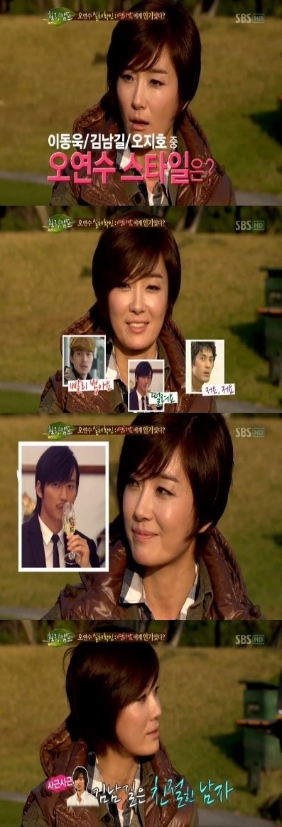 이중 오연수는 “다 좋은데 가장 최근에 작품을 같이 한 김남길이 기억에 남는다. 성격도 참 사근사근하고 좋다”고 속마음을 공개했다.