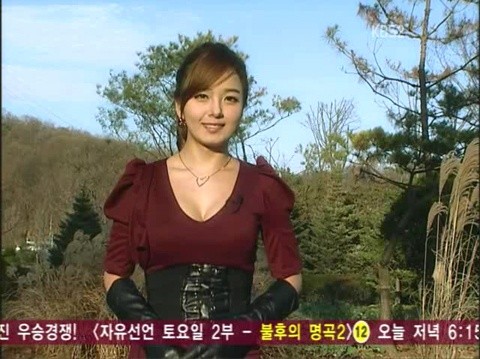지난 26일 방송된 KBS2TV ‘영화가 좋다’의 ‘사운드 오브 무비’ 코너에서 차다혜 아나운서는 와인색 원피스에 허리라인을 강조한 코르셋 모양의 가죽 벨트와 긴 가죽장갑, 그리고 블랙 스타킹을 매치, 약간은 난해한 의상을 선보였다.