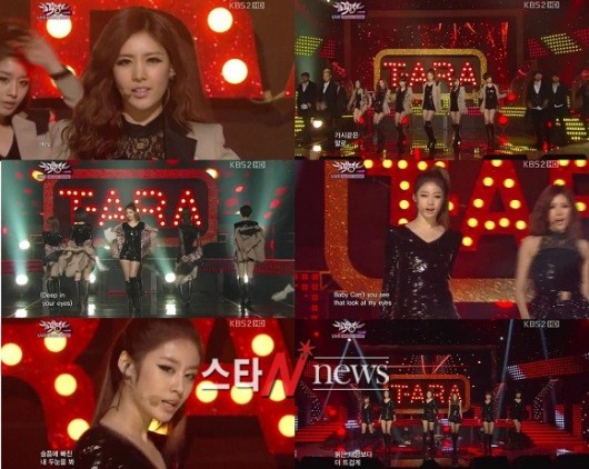 이날 방송에서 베이지 컬러의 자켓 속 블랙 미니 원피스를 입고 등장한 티아라는 도발적인 눈빛과 안무로 남성팬들의 마음을 설레게 했다.