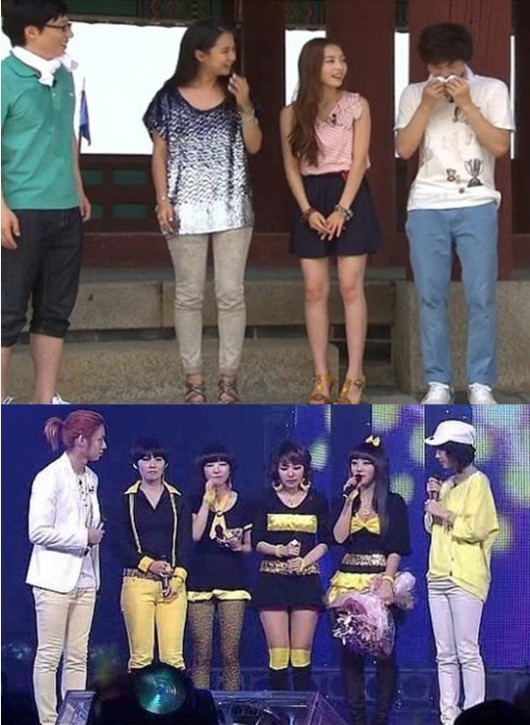 공개된 사진은 과거 SBS '런닝맨'과 '인기가요'에 출연한 송지효의 모습을 캡쳐한 것으로 각각 카라의 구하라, 브라운아이드걸스와 나란히 서있는 모습이다.
