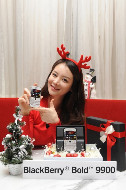 | ▲ 캐나다 리서치인모션(RIM)은 최신 ‘블랙베리 볼드 9900’ 스마트폰의 흰색 제품을 SK텔레콤과 함께 출시하고 각종 경품 행사를 연다고 19일 밝혔다. 모델이 흰색 블랙베리 볼드 9900 제품을 소개하고 있다. |
