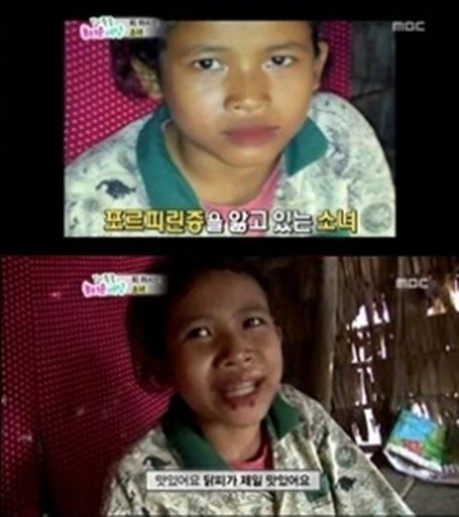 이날 방송에서 공개된 ‘뱀파이어 증후군’을 앓고 있는 소녀는 캄보디아 몬돌끼리주에 거주하고 있는 10세의 소녀 띠아유.