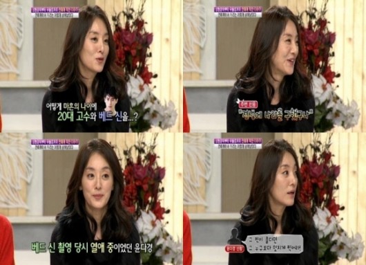 윤다경은 “첫 베드신은 영화 ‘백야행’ 이었다”며 “당시 마흔살에 가까운 나이었는데 배우 고수와 함께 베드신을 찍었다”고 말문을 열었다.