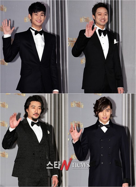 31일 오후 서울 영등포구 여의도동에 위치한 KBS홀에서 '2011 KBS 연기대상' 시상식이 열린 가운데 김수현, 천정명, 이태곤, 이장우가 포토타임을 갖고 있다.