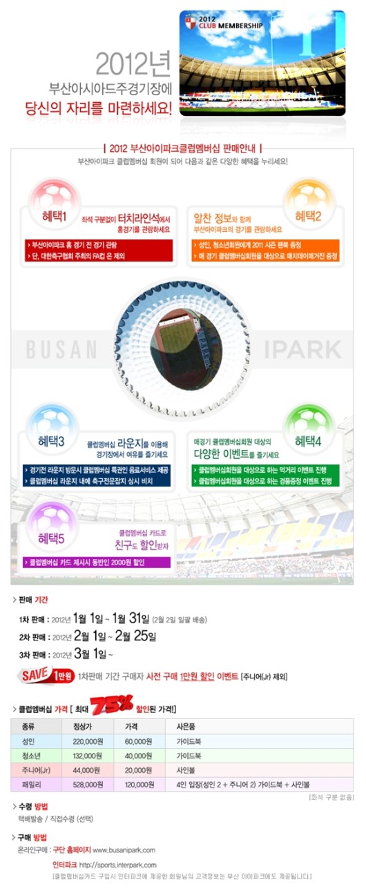 부산 아이파크가 1일 오후 2시 새해의 시작과 함께 2012 시즌권 판매를 시작한다.