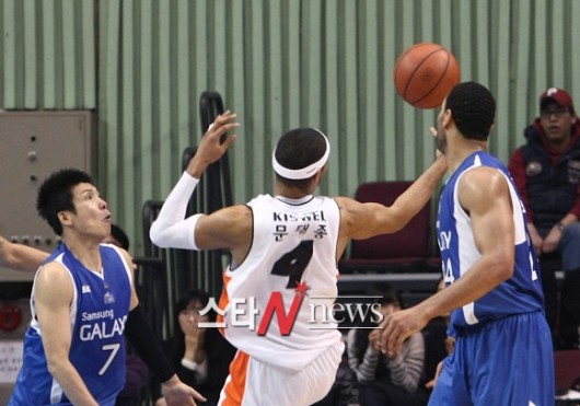 7일 오후 잠실실내체육관에서 ‘2011-2012 KB 국민카드 프로농구’ 서울 삼성과 인천 전자랜드 경기가 열린 가운데 인천 전자랜드의 문태종이 공을 받고 있다.