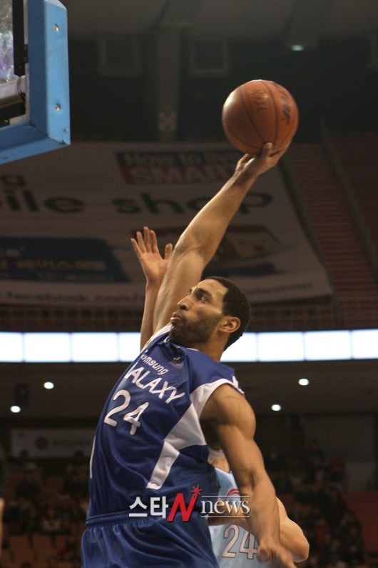 10일 오후 잠실실내체육관에서 ‘2011-2012 KB 국민카드 프로농구’ 서울 삼성 썬더스와 울산 모비스 피버스의 경기가 열린 가운데 삼성의 클라크가 덩크슛을 하고 있다.