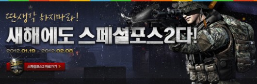 FPS게임 '스페셜포스'는 2월 7일까지 아이패드2, 백화점 상품권, 스페셜포스 후드짚업 등 총 2012개의 다양한 경품을 주는 '설 선물세트' 이벤트를 연다.