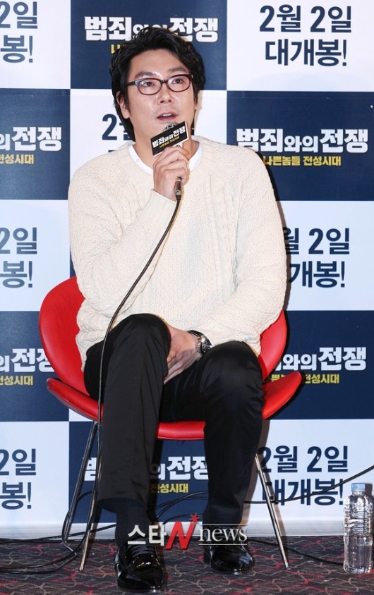 19일 오후 서울 CGV 왕십리 점에서 영화 ‘범죄와의 전쟁 : 나쁜놈들 전성시대’의 언론배급 시사회가 열린 가운데 배우 조진웅이 출연 소감을 이야기하고 있다.