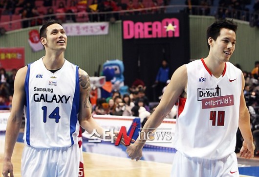 28일 오후 서울 잠실실내체육관에서 2012 KB국민카드 프로농구 올스타전 ‘15주년 레전드 올스타’가 열린 가운데 하프타임 특별 이벤트로 이승준-이동준, 문태종-문태영의 형제대결이 펼쳐졌다.