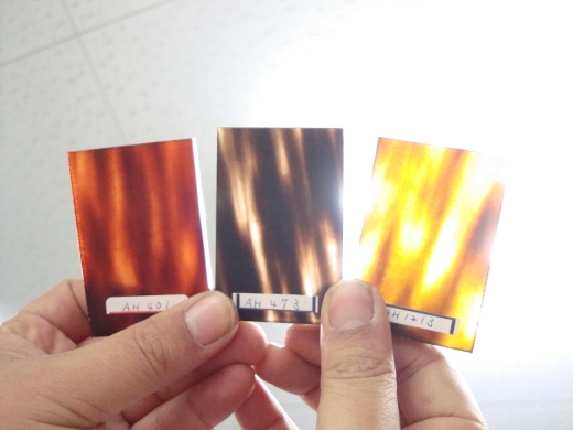 비슷한 색상으로 아세테이트 시트가 존재하지만 AMBER 특유의 PINE(후쿠이 장인들은 AMBER 색상의 시트를 파인이라고 부른다)의 은은함과 깊이에 있어 확연한 차이를 보인다.