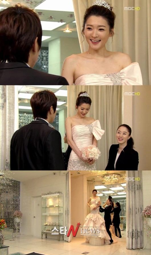 지난 28일 MBC 주말 드라마 ‘천번의 입맞춤’에는 지현우(우빈 역)와의 결혼을 원하던 차수연(유경 역)이 몸매를 드러내는 머메이드 라인의 웨딩드레스를 선보였다.