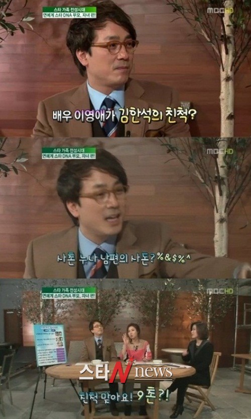 이어 그는 “촌수를 따져보니 9촌이더라”고 설명했고 이에 MC 김성경은 “9촌이면 결국 남이다”라고 말해 김한석을 당황하게 만들었다.