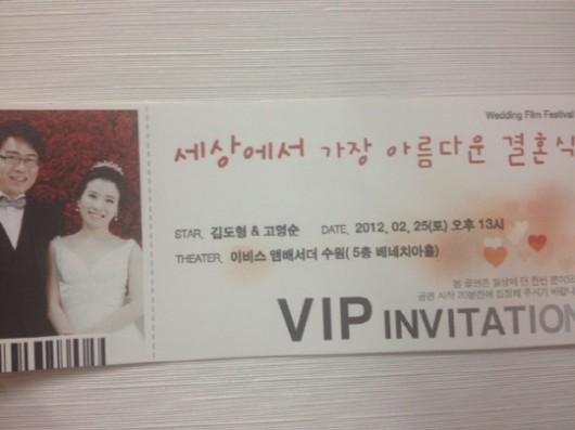 이 티켓 청첩장은 인터넷 포털 사이트의 한 웨딩카페에서 회원들에게 무료로 제공하는 서비스로 한 사람 당 100매까지 무료 제작, 발송하고 있다. 100매를 추가하면 3만원을 내야 한다. 이 웨딩카페는 티켓 청첩장 무료 제작 기준으로 출석체크 3회 이상, 성의있는 후기 5회 이상 등을 내걸었다.