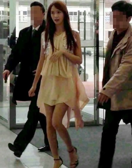 공개된 사진에서 윤아는 봄내음이 물씬 풍기는 하늘하늘한 노란색 원피스를 입고 경호원들과 함께 건물로 들어서고 있는 모습이다.