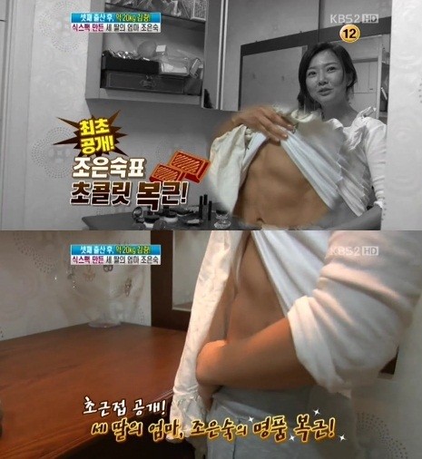 특히 제작진의 부탁에 직접 복근을 공개한 조은숙은 초콜릿 피부의 각 잡힌 명품 복근을 보이며 부끄러워하는 모습을 보이기도.