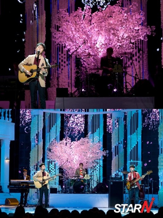 이날 버스커버스커는 '벚꽃 엔딩'이라는 제목에 걸맞게 화창한 벚꽃이 흐드러진 무대 위에서 열창을 해 눈길을 끌었다.
