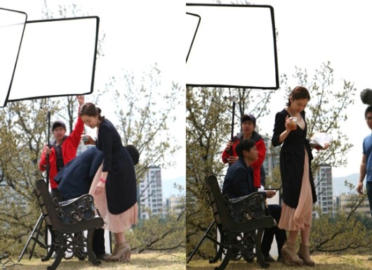 공개된 사진 속 엄지원은 대본을 들고 한손엔 커피를 마시고 있으며 특히 그는 인디언 핑크 시폰 원피스에 7부 재킷을 매치 로맨틱한 분위기에 호피무늬 포인트가 들어간 베이지 톤 구두로 산뜻한 봄 분위기를 자아냈다.