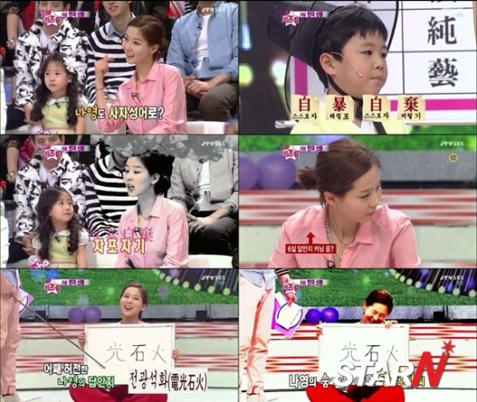 첫 번째 문제 ‘반신반의(半信半疑)’에서 정확한 한자를 쓴 임찬 군과 달리 김나영은 한자신동의 답변을 보려하는 등 컨닝에 나섰고, 김병세는 한자대신 그림을 그리며 굴욕을 맛봤다.