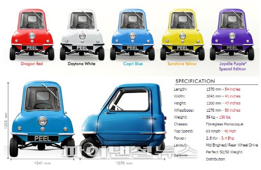 1962년부터 1965년까지 영국의 필엔지니어링에서 단 50대가 생산된 바 있는 이 차의 외관은 흡사 걸리버 여행기에 나오는 소인국에서 타고 다닐 법하다. 무게 59kg에 높이는 1.2미터에 불과하다. 폭은 1미터 남짓, 길이도 초등학생 키만한 1.37미터 밖에 되지 않는다.