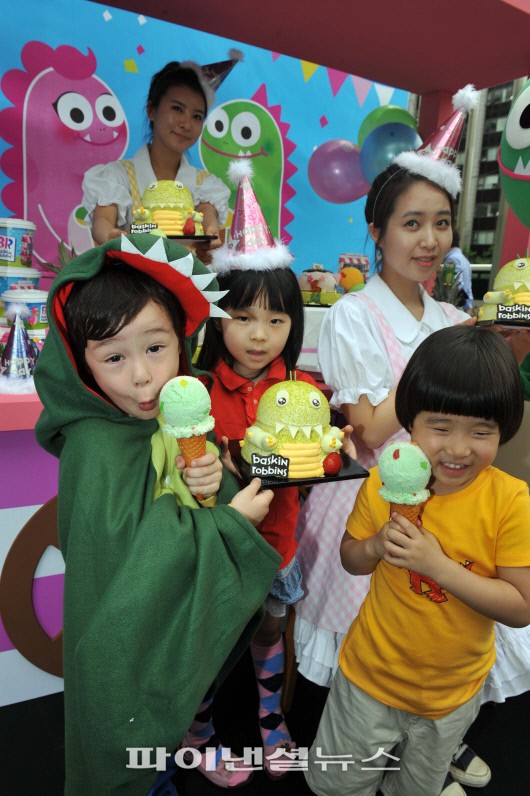 베스킨라빈스는 어린이날을 앞두고 1일 서울 청계광장에서 아이들이 좋아하는 공룡모양 젤리가 들어간 아이스크림 '디노젤리'를 선보이고 있다./사진=서동일기자