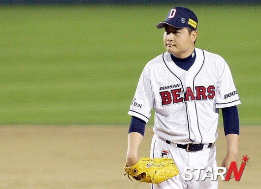 10일 오후 서울 송파 잠실구장에서 ‘2012 팔도 프로야구’ SK 와이번스와 두산 베어스의 경기가 열린 가운데 두산의 이혜천이 고민에 빠져 있다.