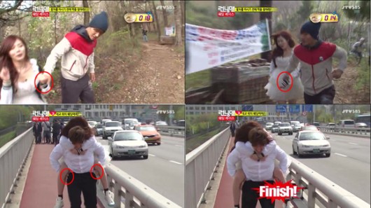 또한 현아를 업고 달리는 게임도중에도 김종국은 손등으로 다리를 받치고 뛰는 등 신체 접촉을 최소한으로 하려는 노력을 보여 눈길을 끌었다.