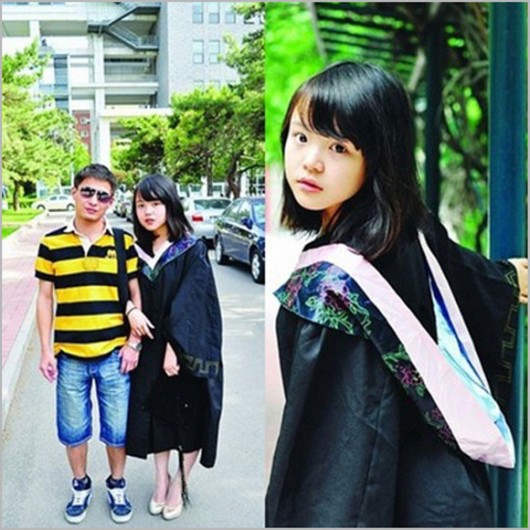 공개된 사진 속 여대생은 키가 작고 앳된 얼굴이라 초등학생이 언니의 학사복을 뺏어 입은 듯한 모습을 그리고 있다.