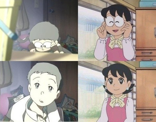 안경은 벗은 진구는 또렷한 이목구비를 가진 미소년의 모습을 지니고 있으며 게시자는 이를 ‘진구의 배신’이라는 제목을 붙여 웃음을 자아내게 만들었다.