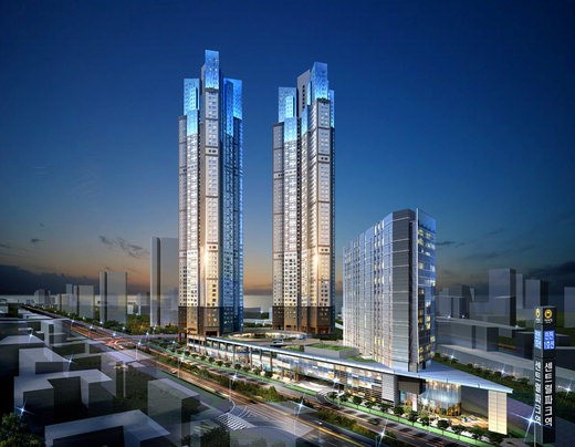 송도 아트윈 푸르지오는 지하 5층~지상 60층 아파트 2개동 총 999가구 규모로 전용면적 84㎡ 564가구, 106~136㎡ 429가구, 210㎡ 6가구로 구성되며 아파트 외에 호텔, 오피스텔, 근린생활시설이 같은 단지에 들어선다.