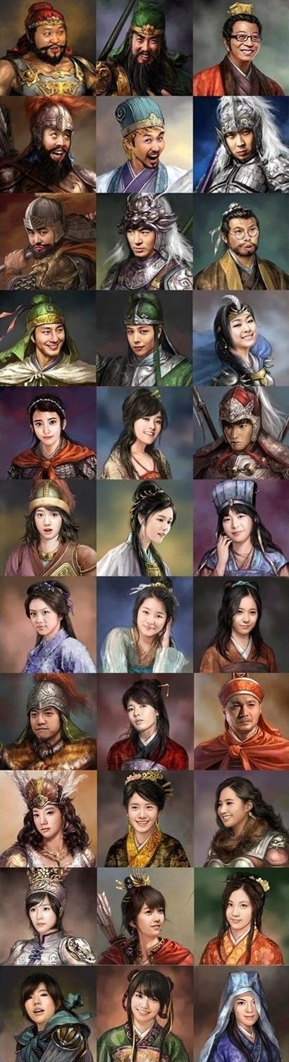 공개된 사진은 일본 코에이 시뮬레이션게임 ‘삼국지11’ 속 캐릭터들을 기초로 각 분야별 연예인들의 얼굴이 총망라된 모습이다.
