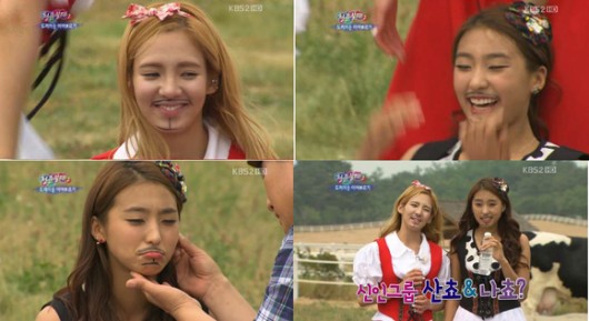 또한 보라와 효연은 즉석에서 ‘산쵸와 나쵸’ 유닛을 결성해 특별 무대를 펼쳐 보이기도 해 또 한 번 큰 웃음을 선사했다.