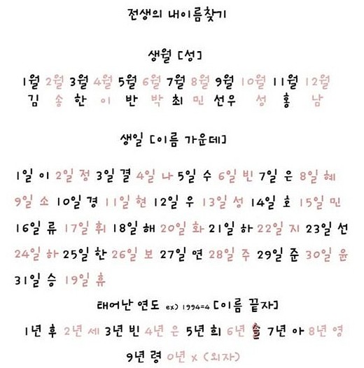 최근 한 인터넷 커뮤니티 게시판에는 ‘전생의 내 이름 찾기’라는 제목의 게시물이 게재됐다. ‘전생의 내 이름 찾기’는 태어난 달, 생일, 태어난 년도의 맨 뒷자리 순으로 이름 한자씩 대입하면 전생의 내 이름이 완성된다.