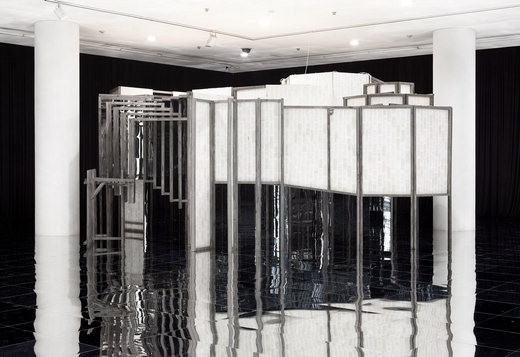 번들번들한 전시장 바닥 위에 축조된 구조물의 정체를 한눈에 알아보기란 쉽지 않다. 내부에는 다각도로 세워진 거울이 공간을 반사하고 구조물 중간에 위치한 양면 거울은 무한의 이미지를 순환시키며 미로를 만들어낸다. 한국을 대표하는 여성 설치미술가 이불(48)의 신작 '비아 네가티바(Via Negativa)'다.
