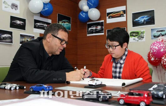 기아차는 20일 서울 양재동 본사에서 피터 슈라이어 디자인총괄 부사장과 백혈병으로 투병 중에도 자동차 디자이너의 꿈을 키워온 문성웅(남 13세)군이 특별한 만남을 가졌다고 밝혔다.