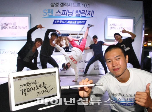삼성전자는 지난 22일 서울 삼성동 코엑스몰에서 '갤럭시노트 10.1'의 전자펜인 'S펜' 돌리기 최강자를 가리는 이벤트를 진행했다고 23일 밝혔다.