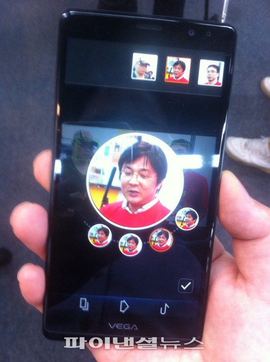 화면 크기가 13.5㎝로 '베가 S5'보다 커졌지만 베젤(테두리)을 3.9㎜로 줄인 데다 뒷면은 완만한 각도를 줘 안정적인 그립감이 느껴졌다. 한 손으로 쥐고 사용하는 데 불편은 없었다.